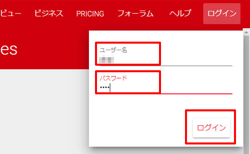 ユーザー名とパスワードを入力して、ログインボタンを押して下さい。