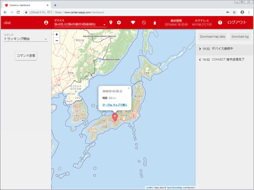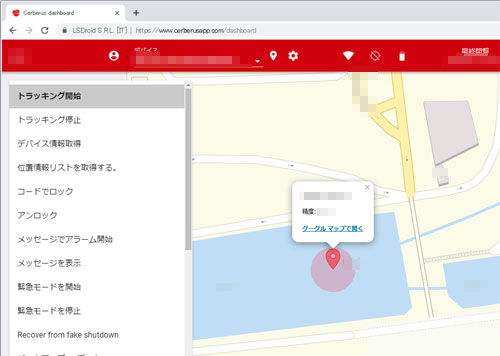 対象者のスマホにあらかじめ「ケルベロス」をインストールし、アカウント(ユーザー名とパスワード)を作成しておきます。スマホの現在の位置を確認するには、「ケルベロス」公式サイトにログイン(※対象者のスマホへケルベロスをインストールするときに作成したユーザー名とパスワードを使用)して確認します。