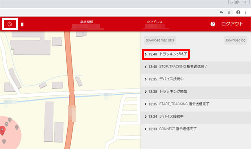 トラッキングを終了する場合は、コマンド画面で「トラッキング停止」を選択し、コマンド送信を押します。