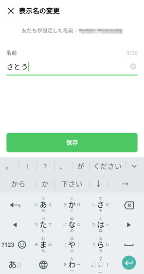 好きな名前に変更して「保存」を押すと名前の表示名が変更されます。