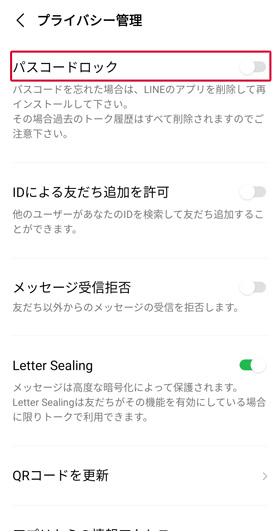 再入力が終わればパスコードロックが完了し、次回からLINEを操作する際にはパスコード入力が必要となります。