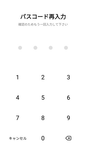 4桁の好きなコードを入力したあと確認のため再入力を求められます。