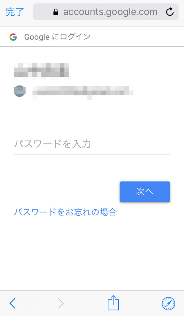 「メールアドレス」と「パスワード」を入力して「次へ」をタッチします。