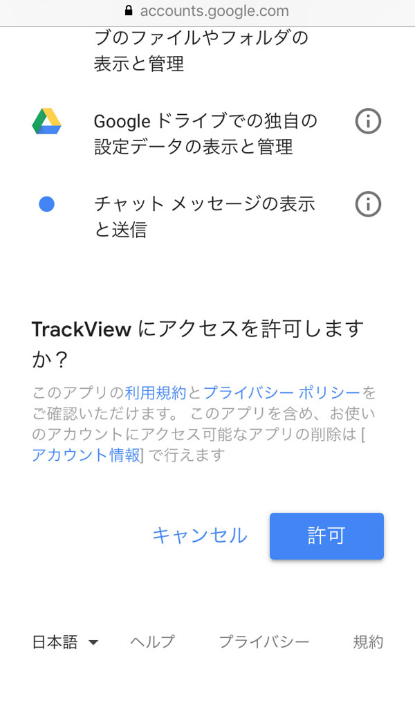 TrackViewからのアクセス許可を求められるので「許可」をタッチすればインストール完了です。